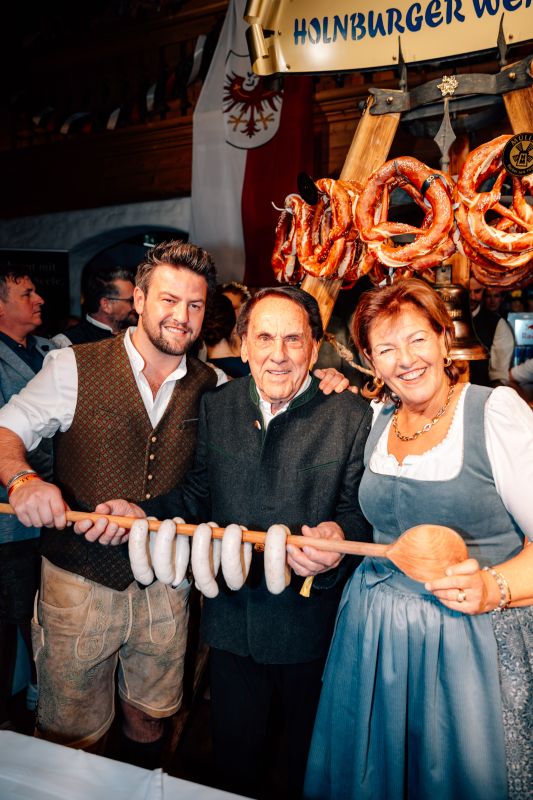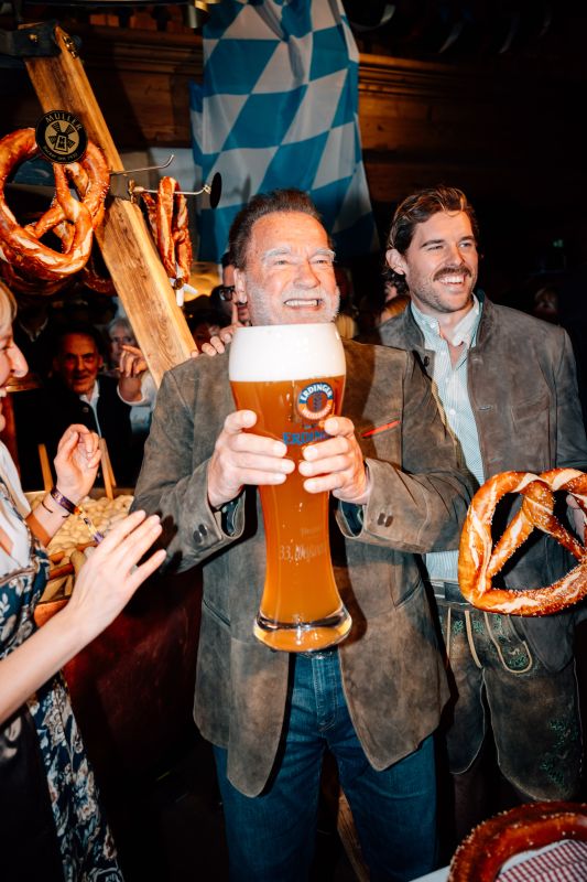 Zuvor hatte Arnold Schwarzenegger gemeinsam mit Sohn Christopher, Familie Hauser (Balthasar, Magdalena, Maria, Elisabeth, Johannes), Ralf Moeller, Jürgen Klopp, Verona Pooth, Lena Gercke, Pamela Reif, Sasha, den Skilegenden Fritz Strobl und Leonhard Stock sowie Metzgermeister Hans Holnburger den offiziellen Auftakt am Weißwurstkessel gestaltet. 2.800 Gäste, darunter viele Stammgäste und Freunde des Hauses, erlebten einmal mehr die „beste Weißwurstparty der Welt“, so ein bestens aufgelegter Arnold Schwarzenegger.